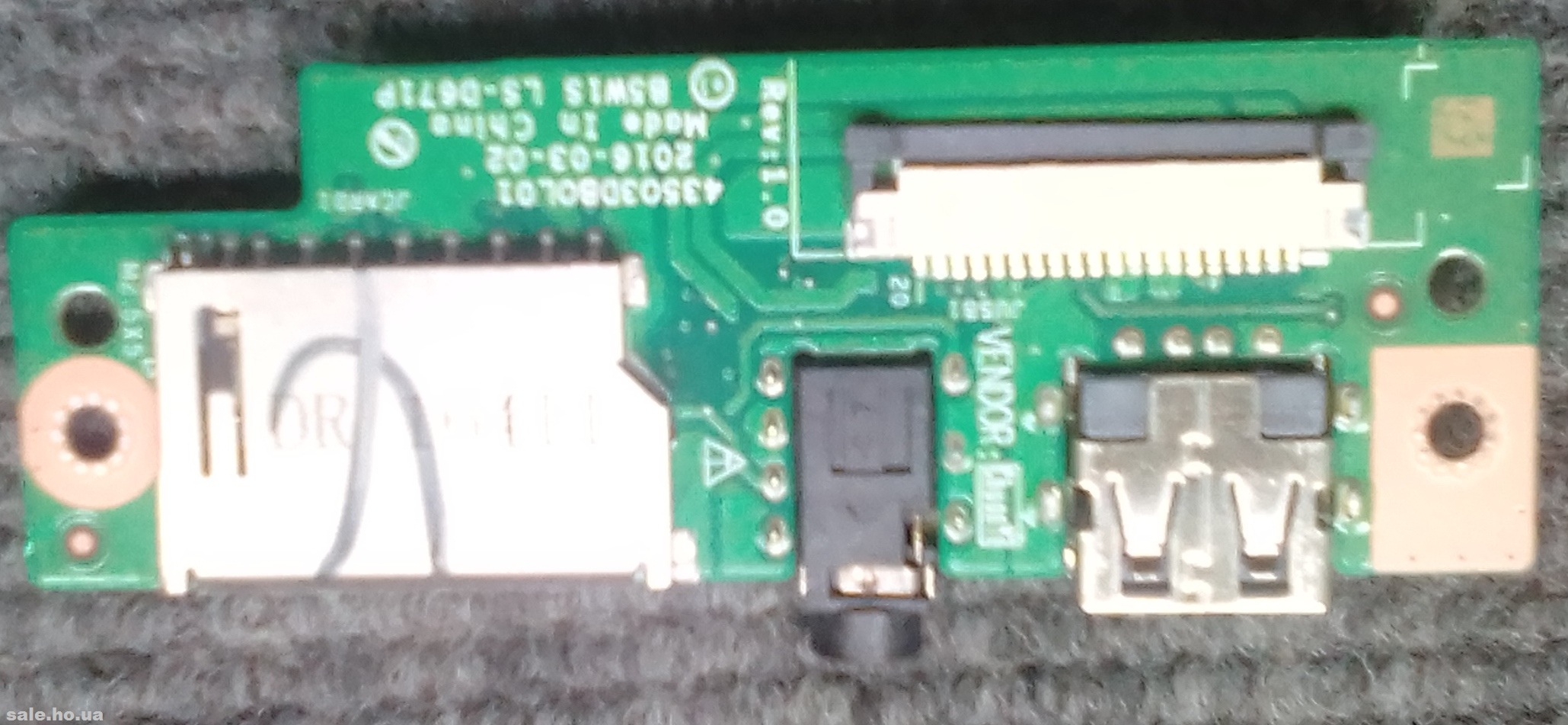 Додаткова плата AUDIO USB CARD READER B5W1S LS-D671P 435O3DBOL01 REV:1.0 Киев, Відправка Укрпоштою тільки після повної оплати. Додатково оплачується: Пакування-18 грн (до відправлення) Пересилання Укрпоштою по Києву-45 грн (при отриманні) Пересилання Укрпоштою по Україні-55 грн (при отриманні) +380682566895 VIBER |